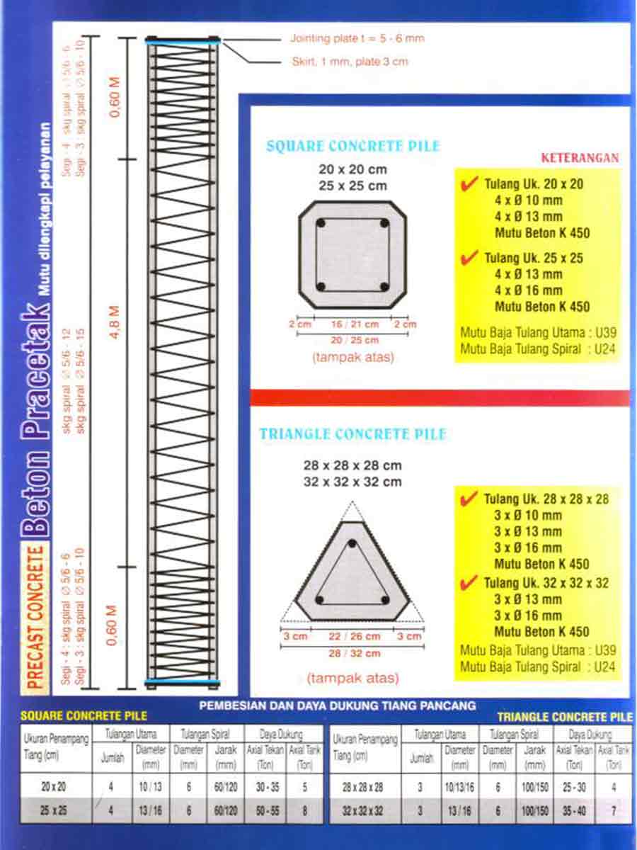 | KODE | PENAMPANG | PANJANG | DAYA DUKUNG | MUTU BETON |